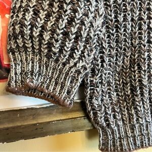 Very good previously owned condition. Brown chunk knit with round collar accent. Cropped short sleeved. No size tag.