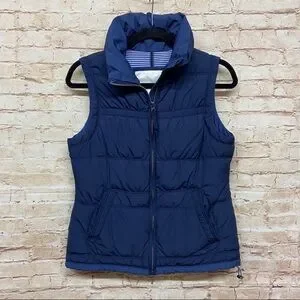 AE American Eagle Womens Puffer Vest Size S Full Zip Pockets Solid Navy Blue