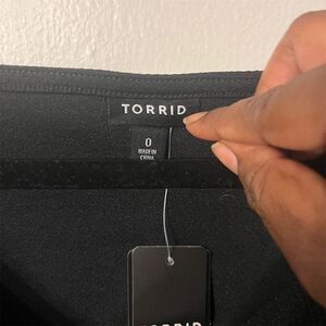 Torrid brand, Plus Size 0X, Black color, Women's Department, Short Sleeve, Occasions: Casual, Party/Cocktail, Material: Polyester, Spandex, V-Neck neckline, Machine Washable, Features: Textured, Stretch, Tiered.