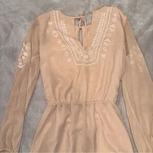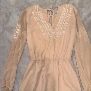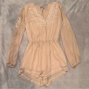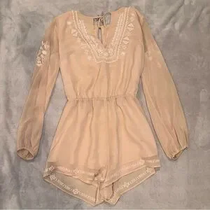 Forever 21 Tan Embroidered Flowy Romper