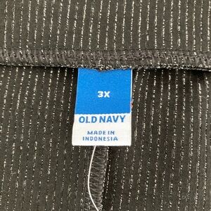 Old Navy rib-knit shine maxi skirt. Elasticized waist. Side slit. Pull on style. Hits above ankle. New. Size 3X. Color black and silver metallic.