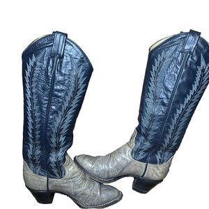 Larry Mahan Womens Knee High Cowboy Boots Size 6 B6N Leather Skin Black Blue