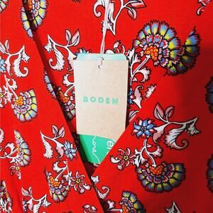 BODEN Short Sleeve Jersey Midi Dress 12R Flame Scarlet Botanical Bunch Floral
