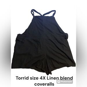 Torrid Black Linen Blend Shortall Overalls Plus Size 4 Adjustable Straps Casual