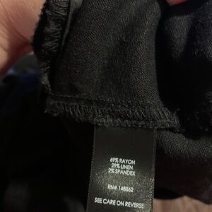 EUC Great overalls with adjustable strap, shorts. Black linen blend with a touch of spandex so it’s got stretch, 2 pockets on the front and 2 pockets in the back great for all weather! Call out - there is some slight pilling on the inside thigh area but not on the outside