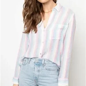 Rails Ellis Iris Gauze Long Sleeve Blouse Stripes Summer Medium