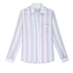 Rails Iris Long sleeve, 100% cotton, double gauze button-down top with shell buttons. Lightweight, breezy, and breathable, this chic classic is a must-have for any vacation and warmer weather alike.
