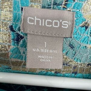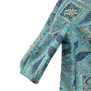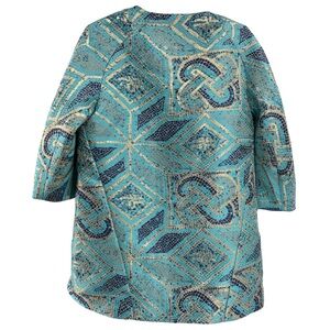 Chico's Turquoise Mosaic Jacquard jacket 1 8/10 metallic blue teal professional