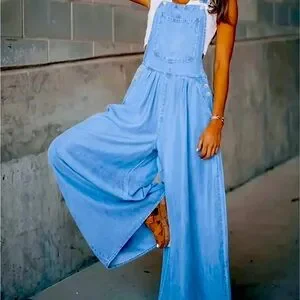 Vintage wash women’s overalls with wide bottoms . OSFA (one size fits all)
