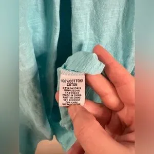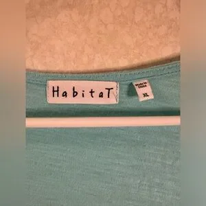 Habitat Blue Woman’s XL Cotton Long Sleeve Tunic Top Buttons Boho Scoopneck