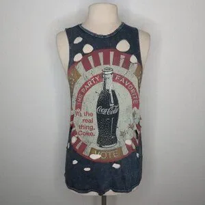 Coca Cola Womens Tank Top Small The Classic Grey Distressed Holes Party Favorite