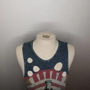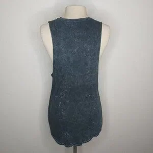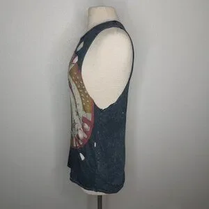 Coca Cola Womens Tank Top Small The Classic Marled Dark Grey Distressed Holes Party Favorite, Beaded "It's the real thing" 34" bust, Large Arm Openings 15" , 26" Length