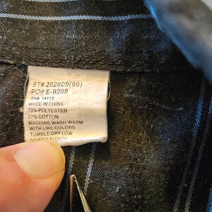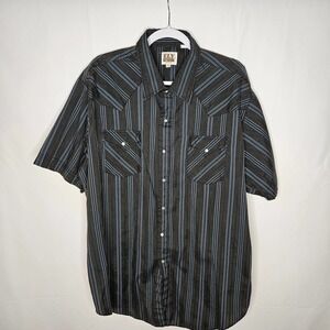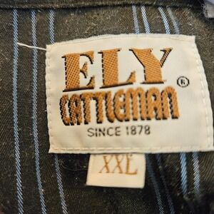 Ely Cattleman since 1878, pearl buttons except for the very top (collar button, size XXL, dark blue with light blue stripes, no stains or rips, excellent condition.