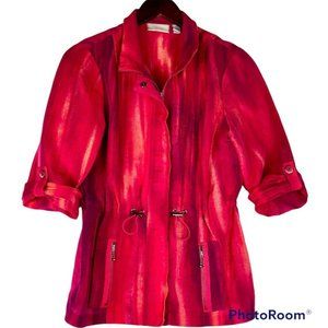 Chicos Sz 0 (Small) Jacket Blazer Pink Ombre Tie Dye Linen Blend Career Casual