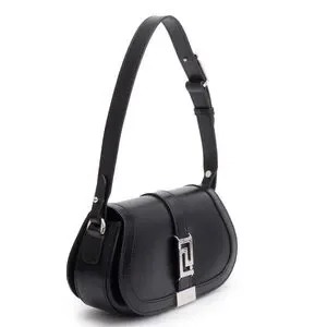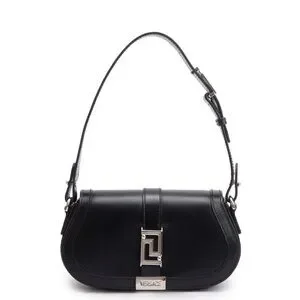 VERSACE Black Calf Leather Mini Greca Goddess Shoulder Bag
