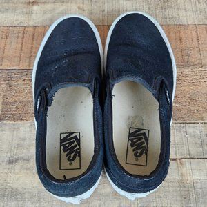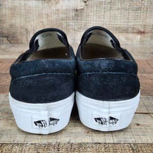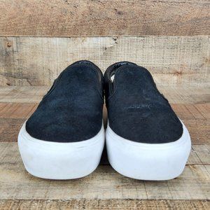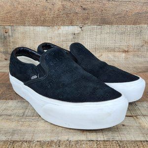 Vans Slip On Platform Women Sz 6 Suede Embossed Letters Casual Classic Black