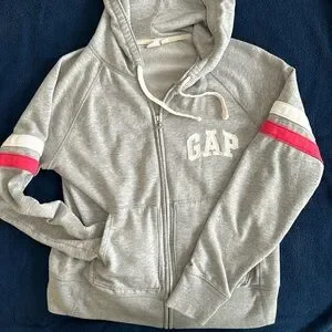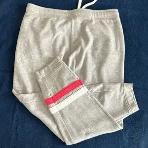 GAP gray jogger set with stripe accents on sleeves and pant leg. Gently worn. Full zip hoodie features 2 stripes on each sleeve and jogger style sweatpants have 2 stripes on right leg. Comfy and cozy for fall.