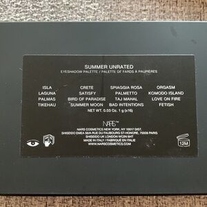 Nars Summer Unrated eyeshadow palette in excellent used condition, only 4 shades have been lightly touched. The palette has not actually been used otherwise. Pet and smoke free home.
