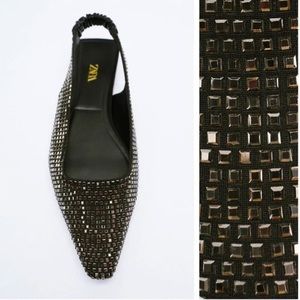Zara Black Sparkly Slingback Flats