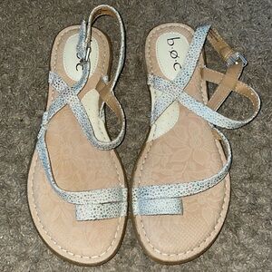 BOC Corey White gold loop toe flat sandals are a size 7M. VGUC