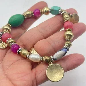 Chico's Multi-Color Beaded Bracelet With Gold Accents & Charms
