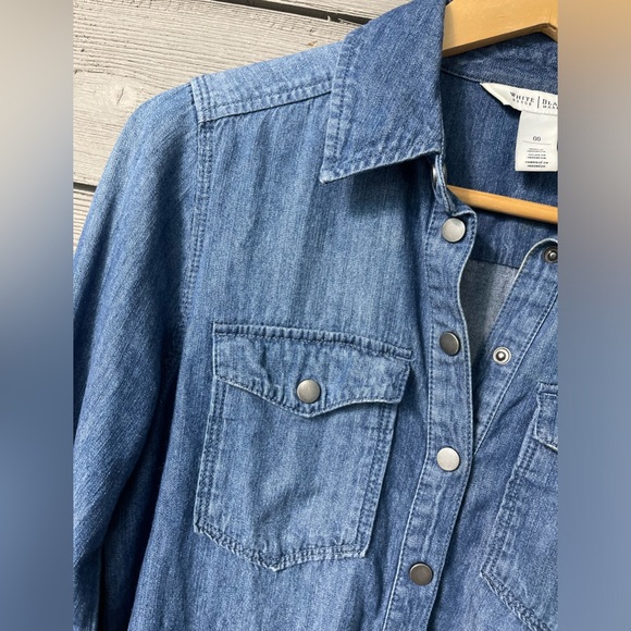 White House Black Market Long Sleeve Denim Button Up Jean Dress Sz 00