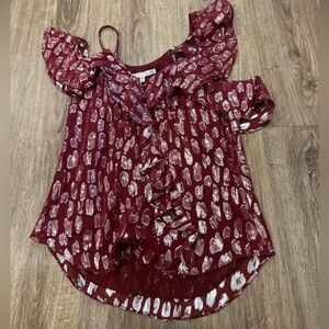 Veronica Beard Benton Maroon Silk Metallic Blouse