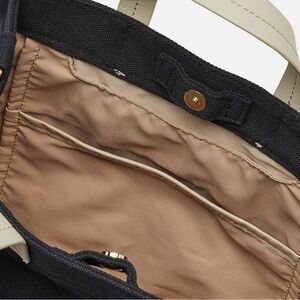 The handles are a mix of different materials of synthetic leather. Attach the included shoulder and it becomes a tote bag. Magnetic hooks keep contents out of sight.