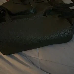 Beautiful green brand new Zara back pack style bag with handle on top. Silver metal detailing. Perfect size to fit a book and phone and cosmetics or school supplies. Never used w tags! Perfect for day trips or traveling or everyday use!