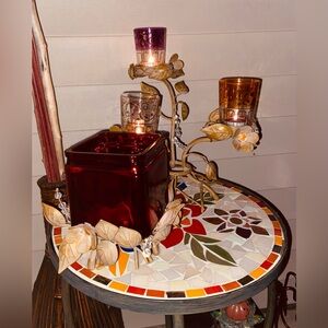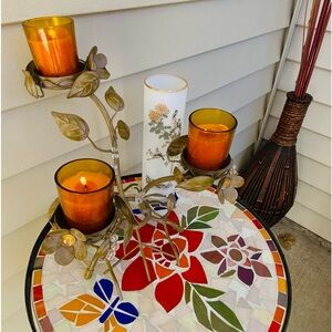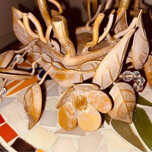 PartyLite Vintage 3+1 Candle Holder Centerpiece-Metal Leaves&Flowers, Beads&Gems