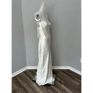 NWT Retrofete Cowl Neck Open Back Faux Pearl Strap Satin Electra Maxi Dress White Medium