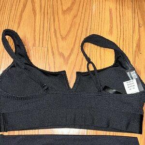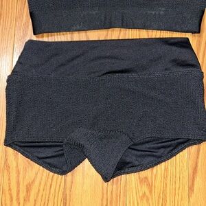 This can be a sexy workout or a swimsuit. Top is notched and removable pad. Shorts is high waisted and 2” inseam. Never worn and no flaws.
