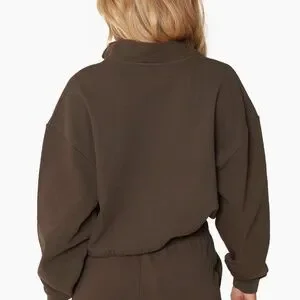 Upgrade your comfort wear with our Heavyweight Sweats Half Zip in Brownstone. Slightly longer than a Cropped Crewneck, it features a kanga pocket, adjustable bottom drawstring, and a zipper from neck to pocket. The embroidered SET logo patch on the upper left of the chest adds a touch of branding.