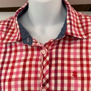 IZOD Red Pink Gingham button down shirt size XXL picnic vacation preppy