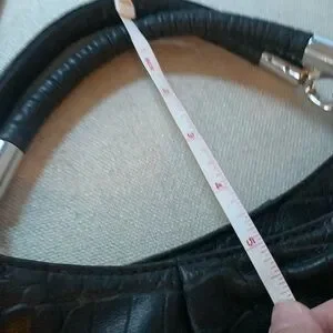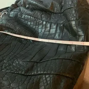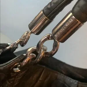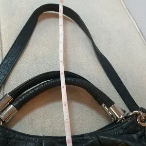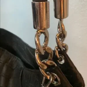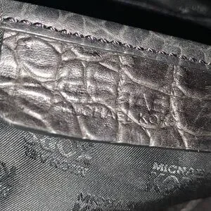 Michael Michael Kors Stylish black croc-embossed bag with silver-tone hardware. Features a spacious interior and a chic design. Perfect for any occasion.