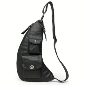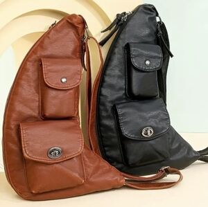 Black Sleek Vegan Leather Minimalist Chest/Sling/Crossbody Bag NEW
