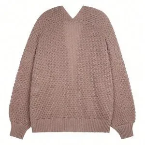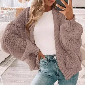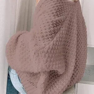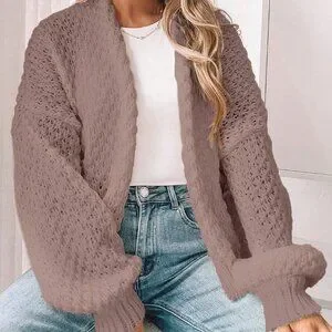 Khaki Casual Women's Dropped Shoulder Long Sleeve Hollow Out Loose Cardigan