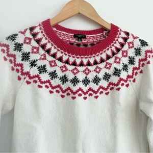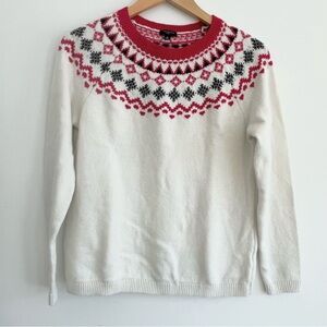 Talbots Nordic Fair Isle Yoke Soft Crewneck Sweater Cream Red Holiday Style SP