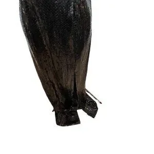 Beautiful fitted dress with chiffon top and black sequined straight maxi skirt with a long slit