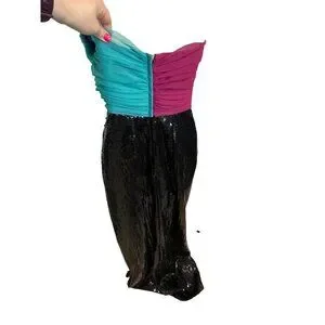Mike Benet Formals Pink Blue Black Sequined Strapless Vintage Formal Dress Sz 10