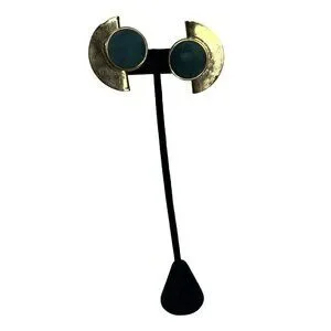 Gold Toned Half Moon & Green Clip On Earrings NWT VTG Sears Roebuck? 1980s