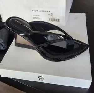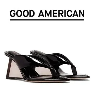 Patent leather Good American Cinder-f*king-rella Black Thong Clear Sandal Wedges