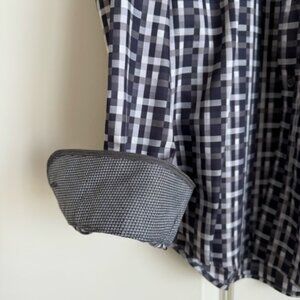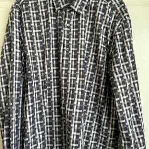 Bugatchi Mens Long Sleeve Black Grey and White with Pattern Turned Cuff - shaped fit Large - Very Good Condition - shirt sent freshly cleaned