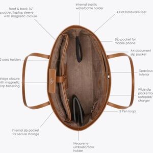 Brand new, no tags. Lawful London Sienna Laptop Bag tote TAN/BEIGE interior Many compartments and very functional Padded laptop compartment - comes with dustbag
