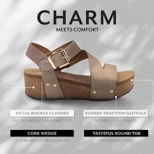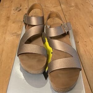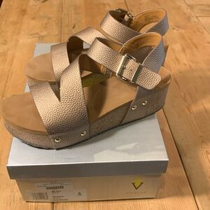 Volatile Biloxi Bronze Size 8 Sandals Foam Over Cork Sole Brass Nailhead GUC