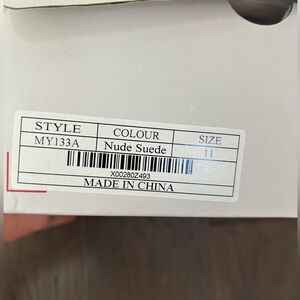 Elegant tan nude suede heels with ankle strap. Perfect for any occasion. Comfortable fit and stylish design that are great for any occasion. Excellent new condition in box and never worn but one shoe tried on before