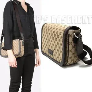 GUCCI brown Original GG Canvas & Leather crossbody flap Shoulder Messenger Bag