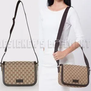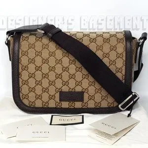 Brand New Authentic Gucci beige & brown Original GG canvas & leather flap top crossbody convertible Shoulder Messenger Bag
