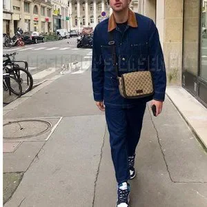 One zip pocket with leather logo patch, serial number embossed underneath on one side