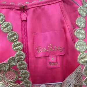Lily Pulitzer Hot Pink Dress with Skort under top layer and Gold Metallic Trim - Size 6 - Like New - Worn Once